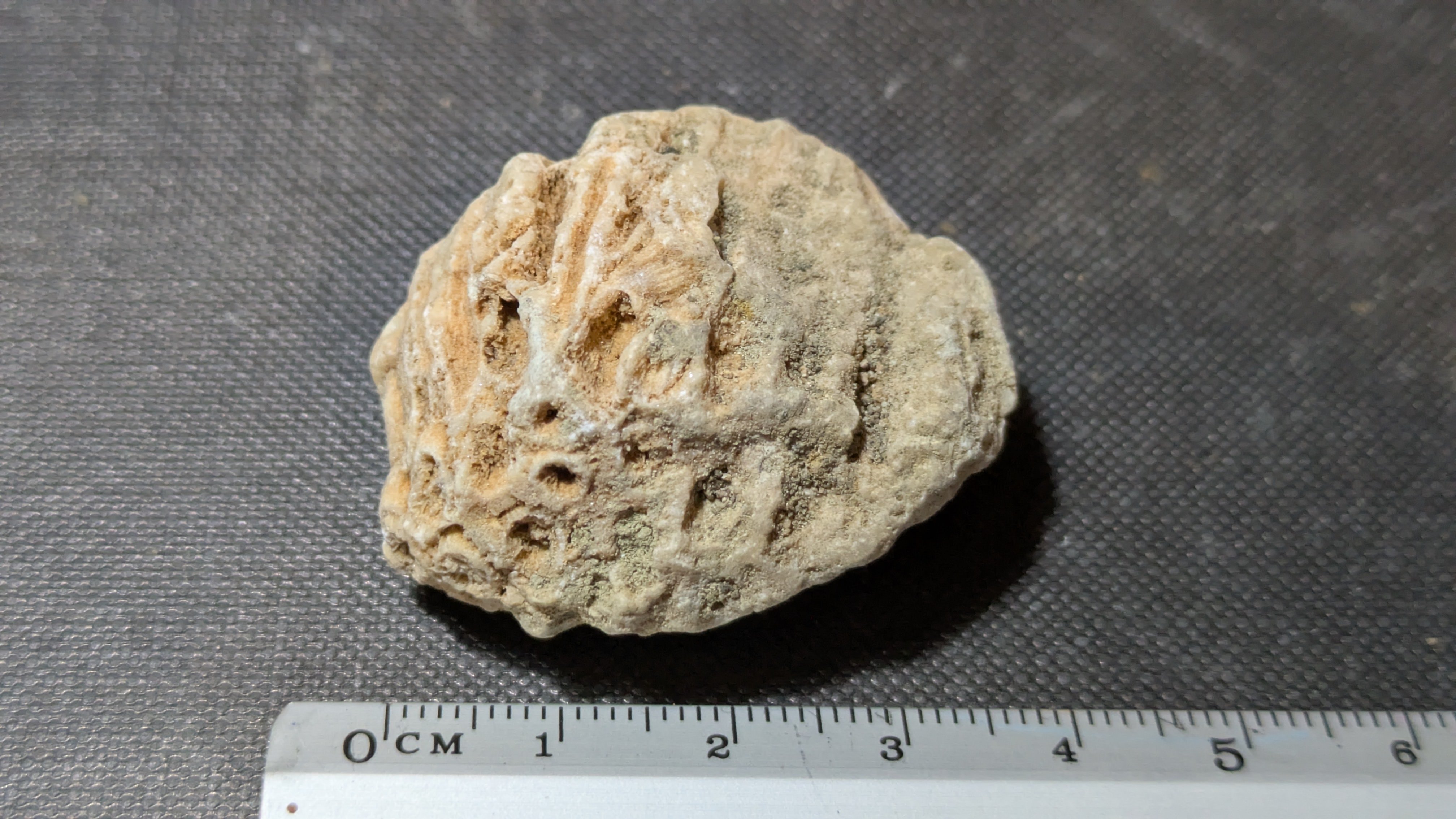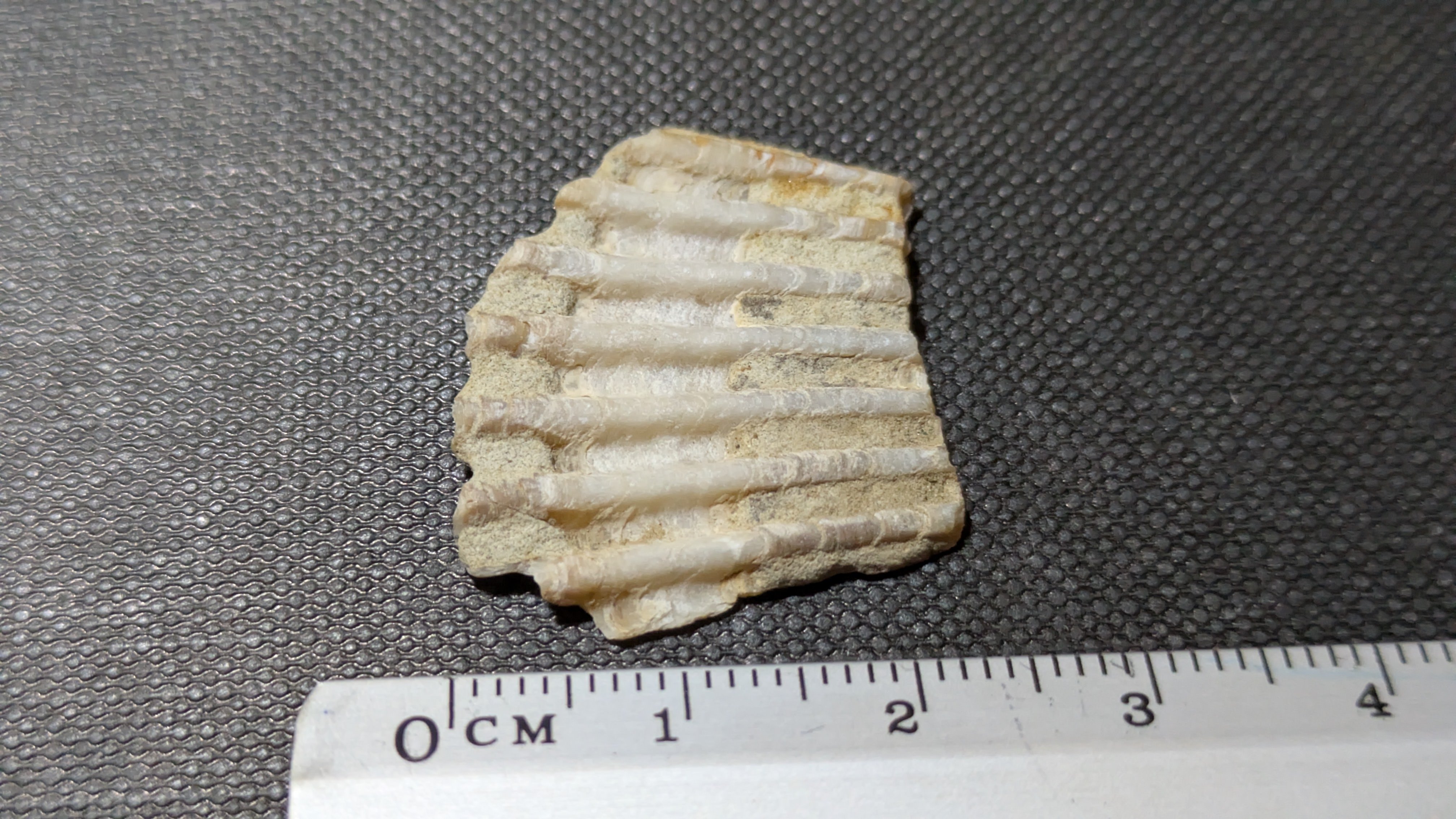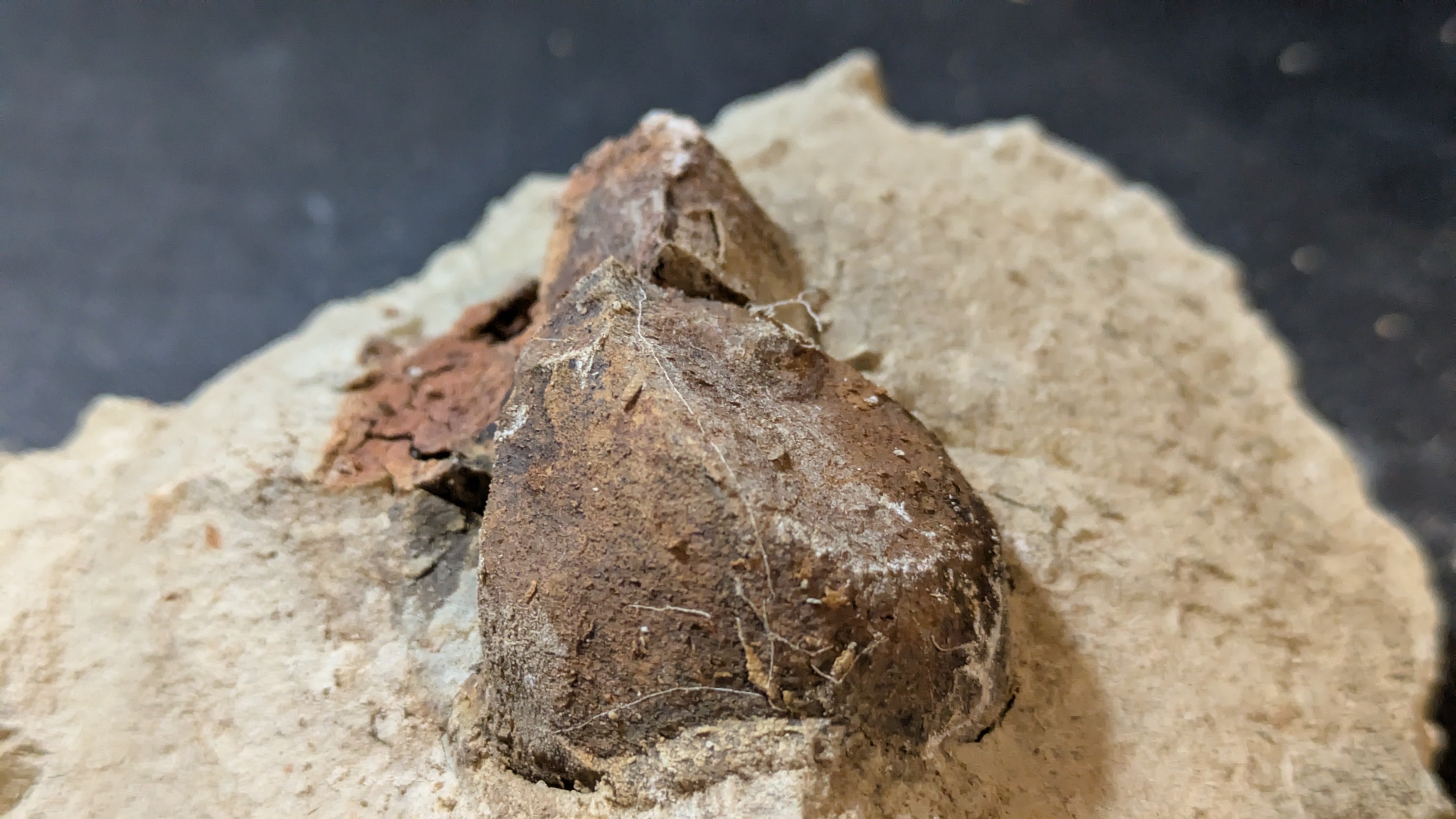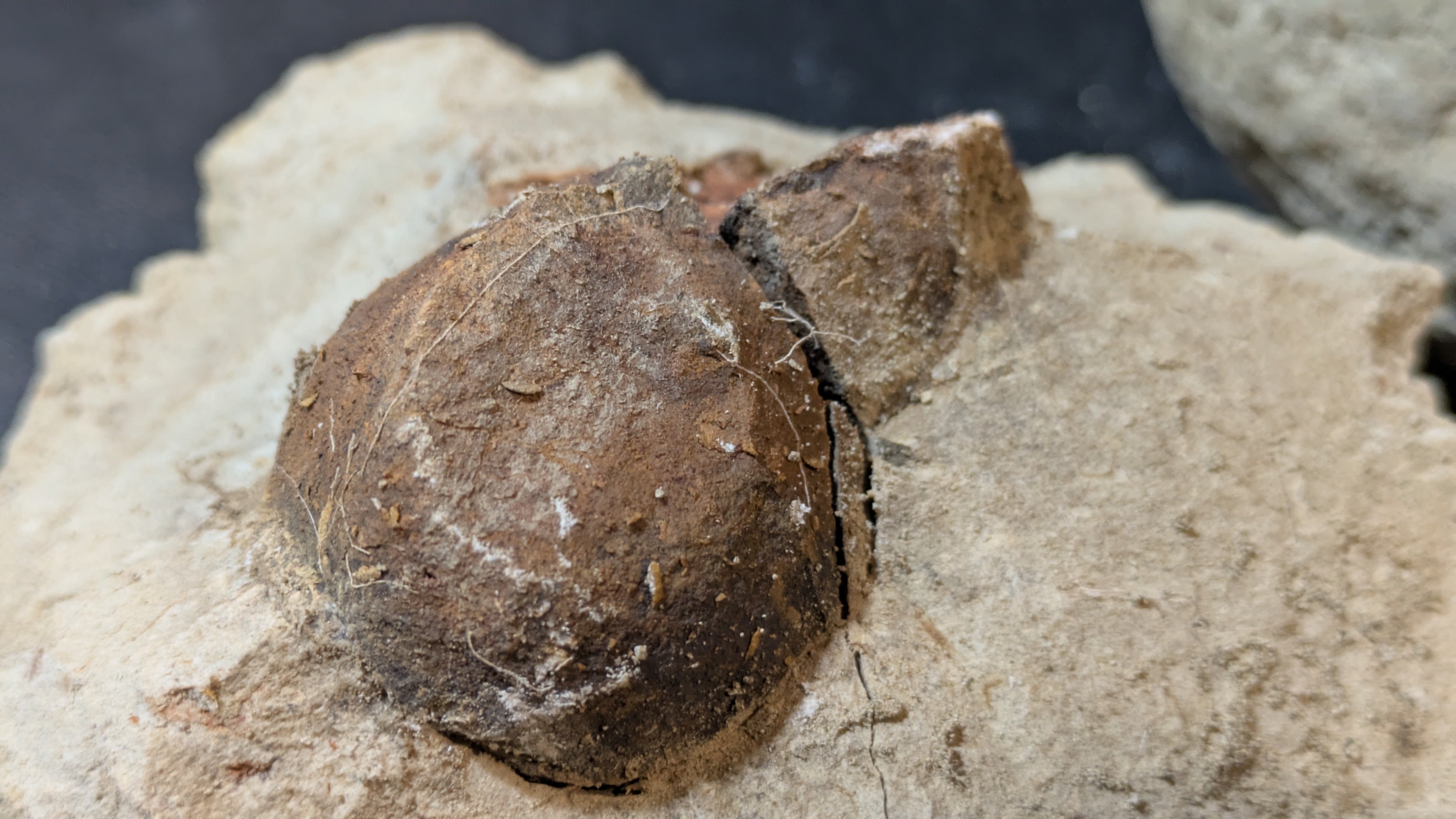 - : Marine mollusc shells (bivalves and gastropods), coral fragments, echinoids, barnacles, plant remains including fossilized pine cones and nuts