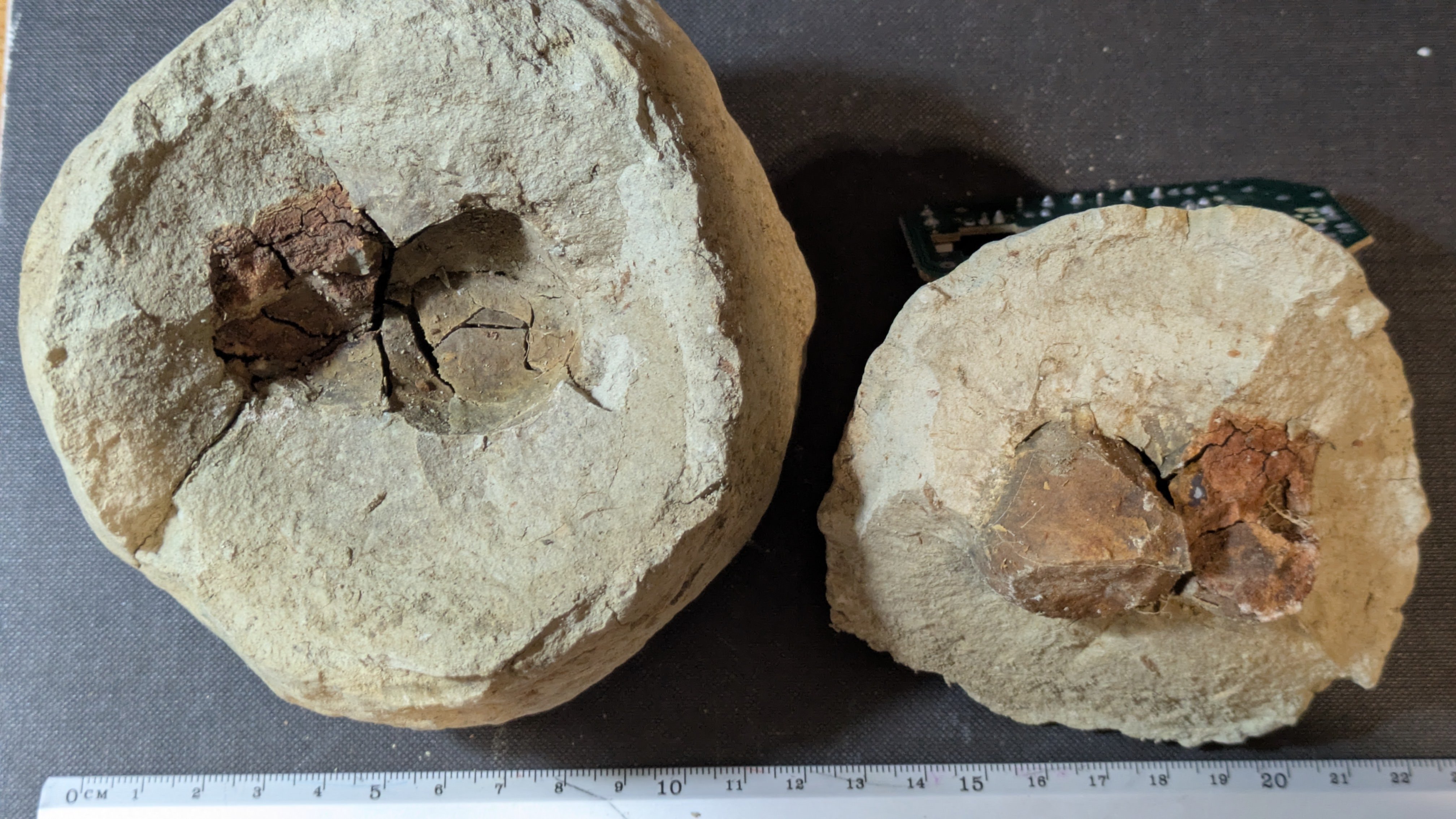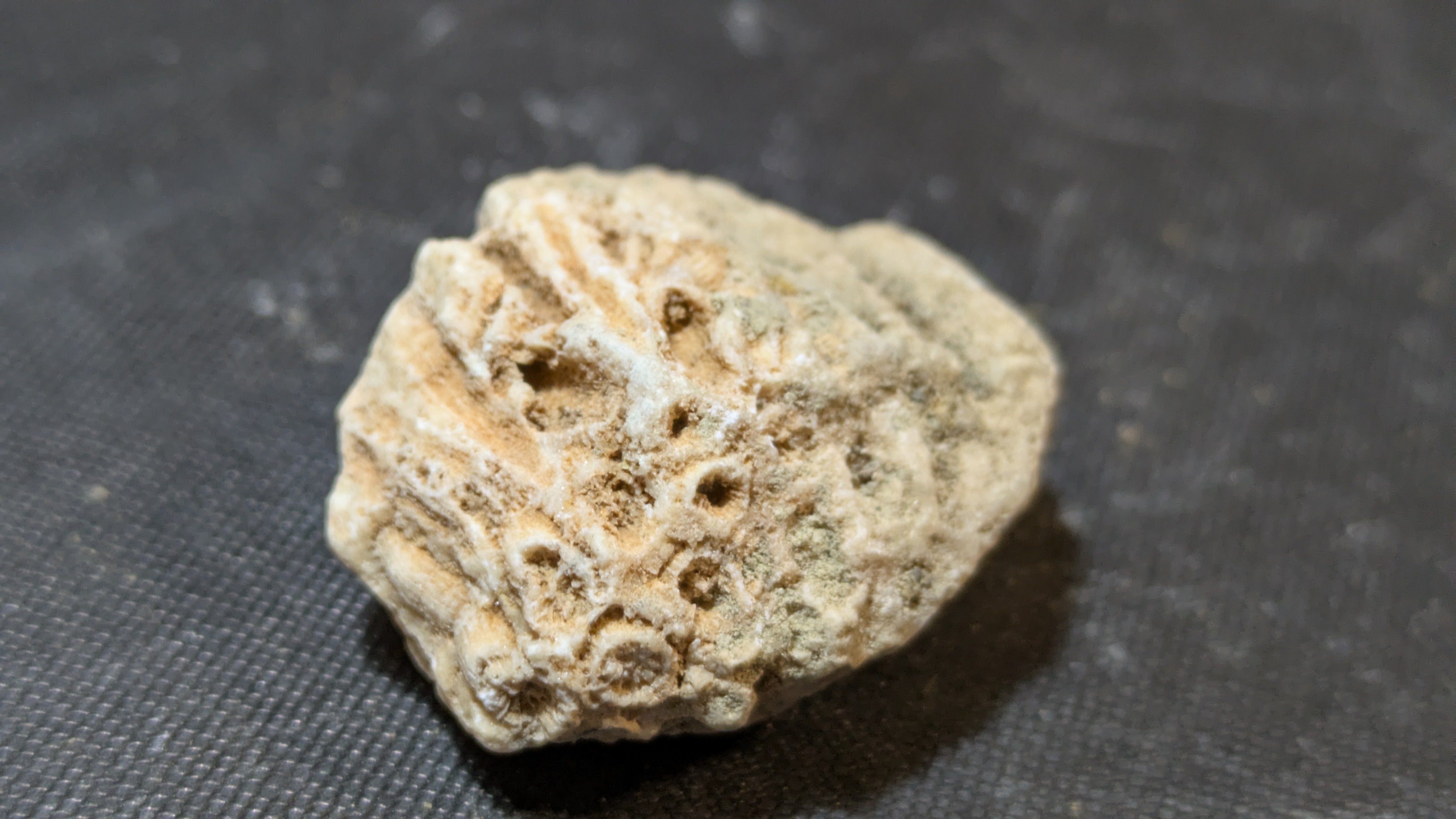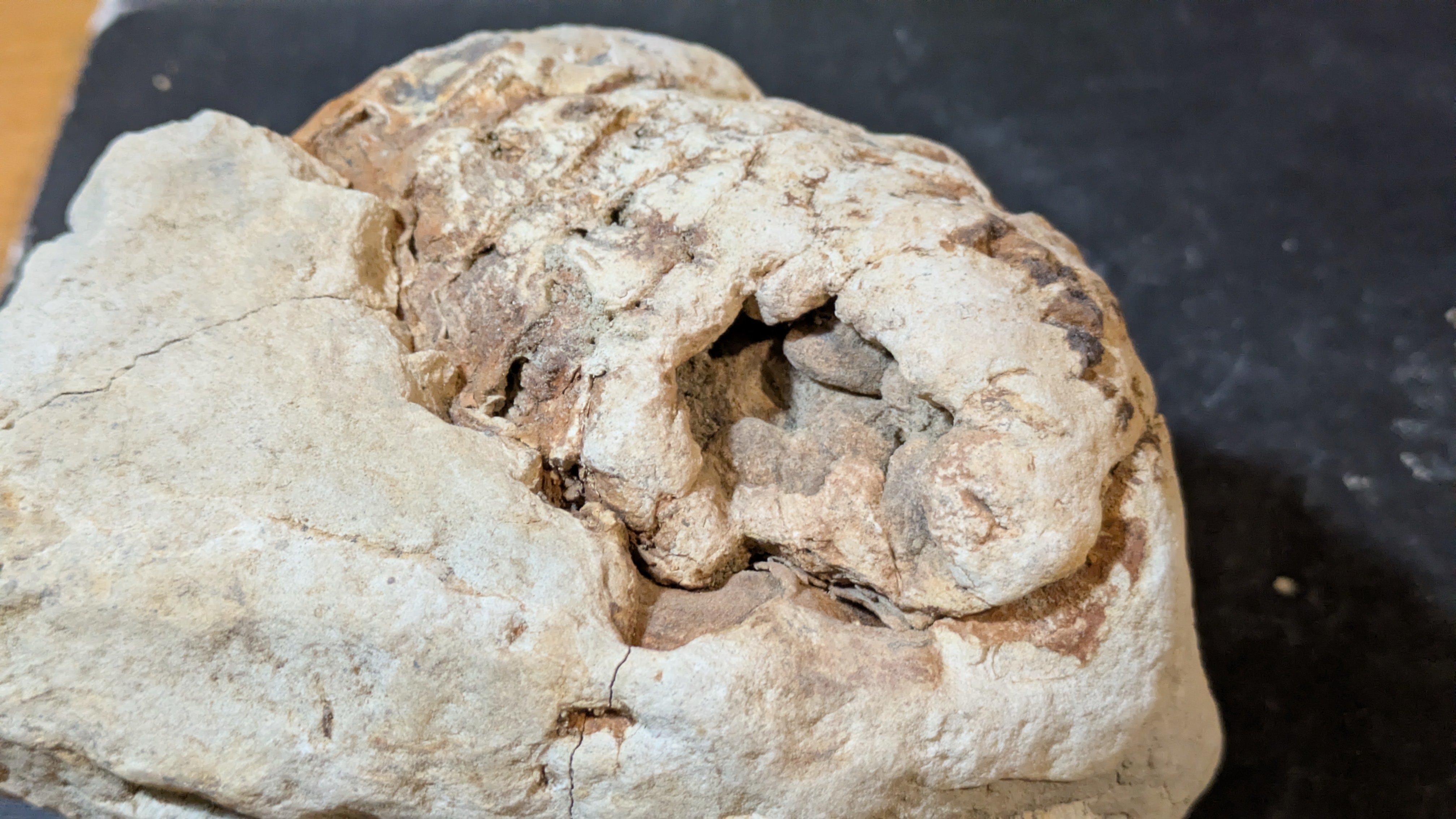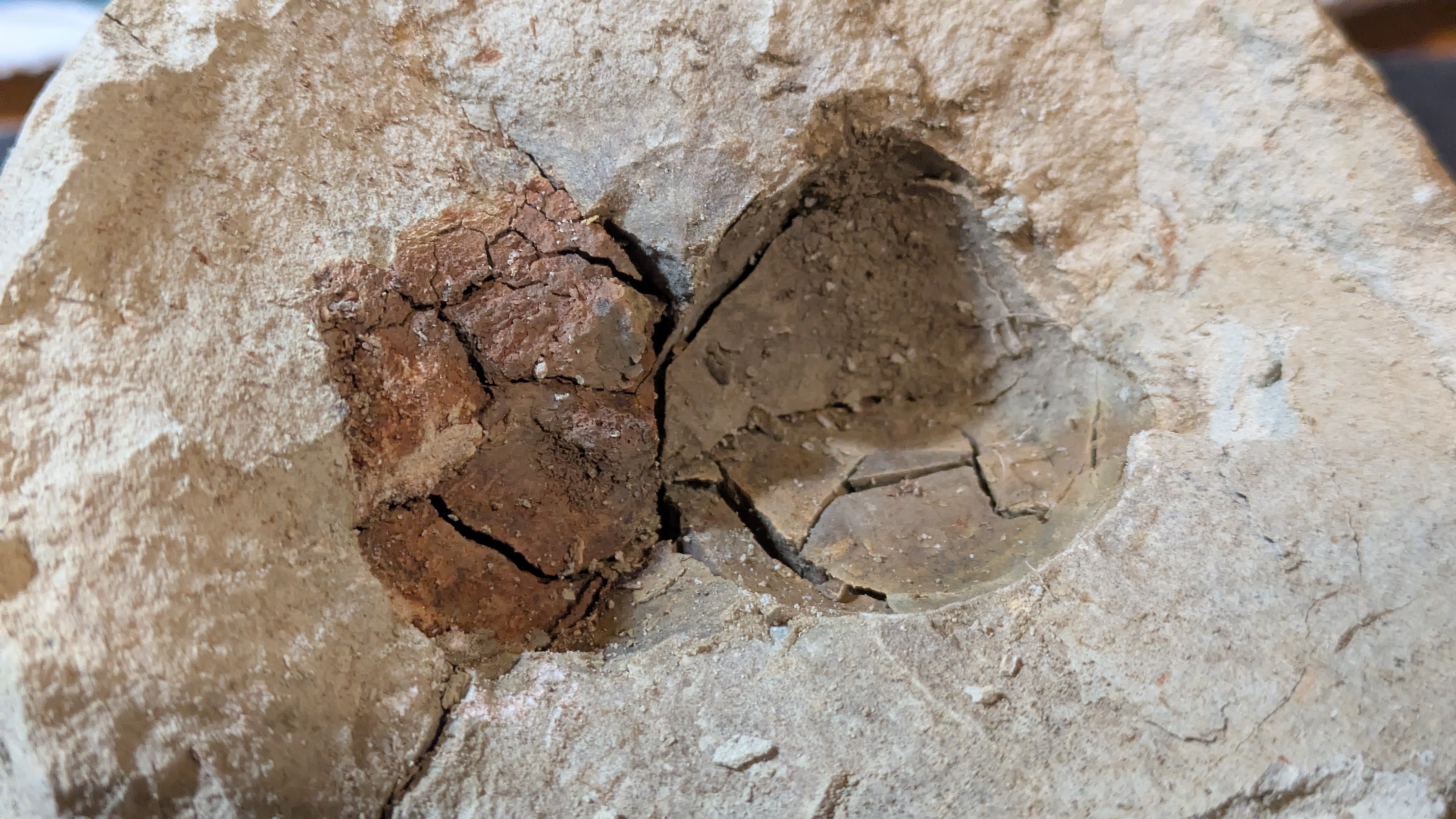 - : Marine mollusc shells (bivalves and gastropods), coral fragments, echinoids, barnacles, plant remains including fossilized pine cones and nuts