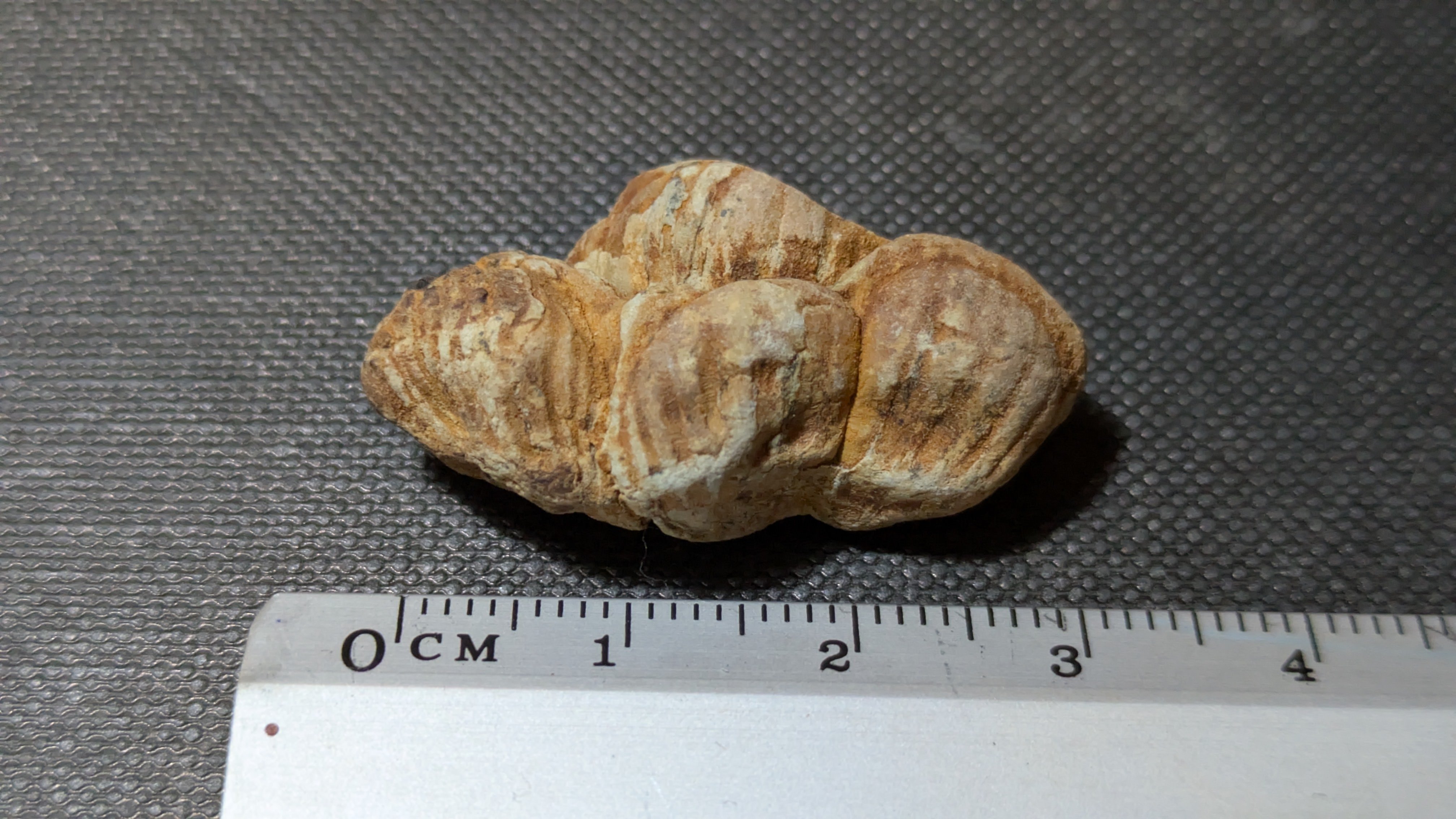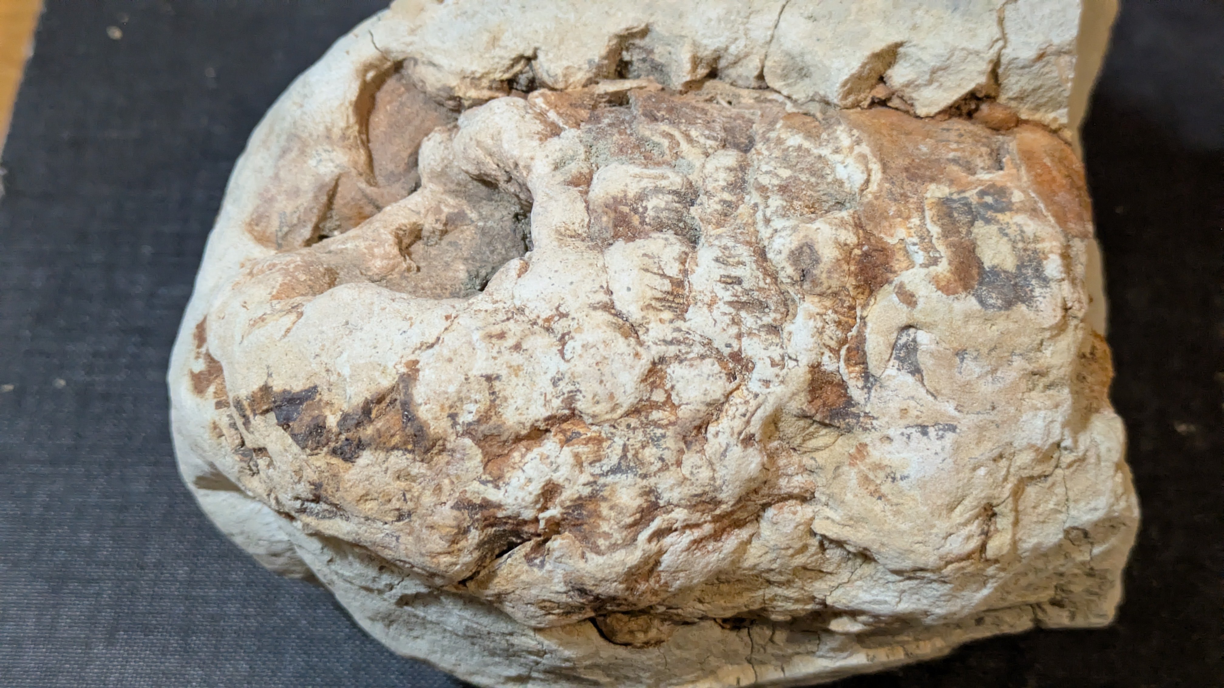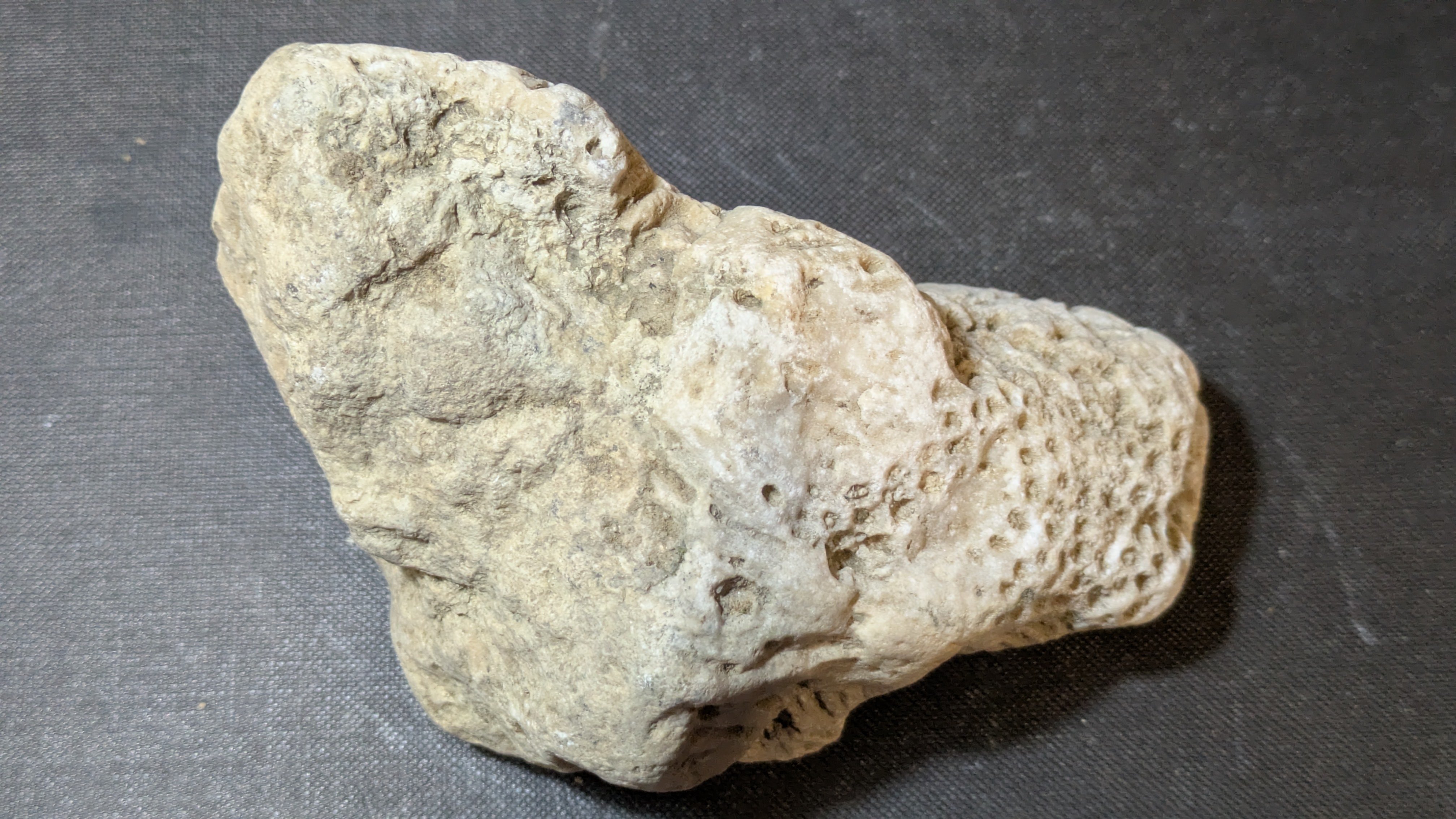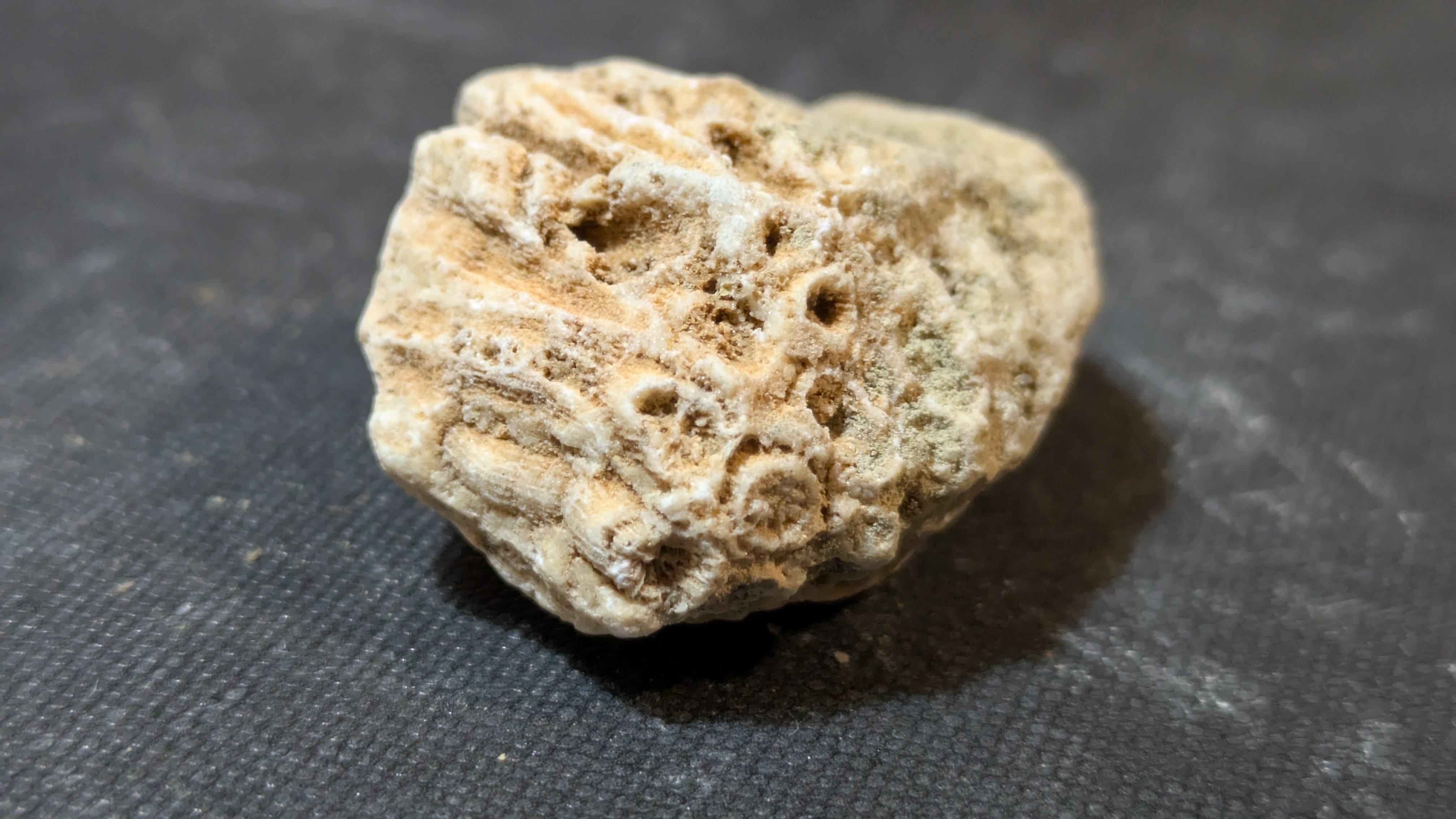 - : Marine mollusc shells (bivalves and gastropods), coral fragments, echinoids, barnacles, plant remains including fossilized pine cones and nuts