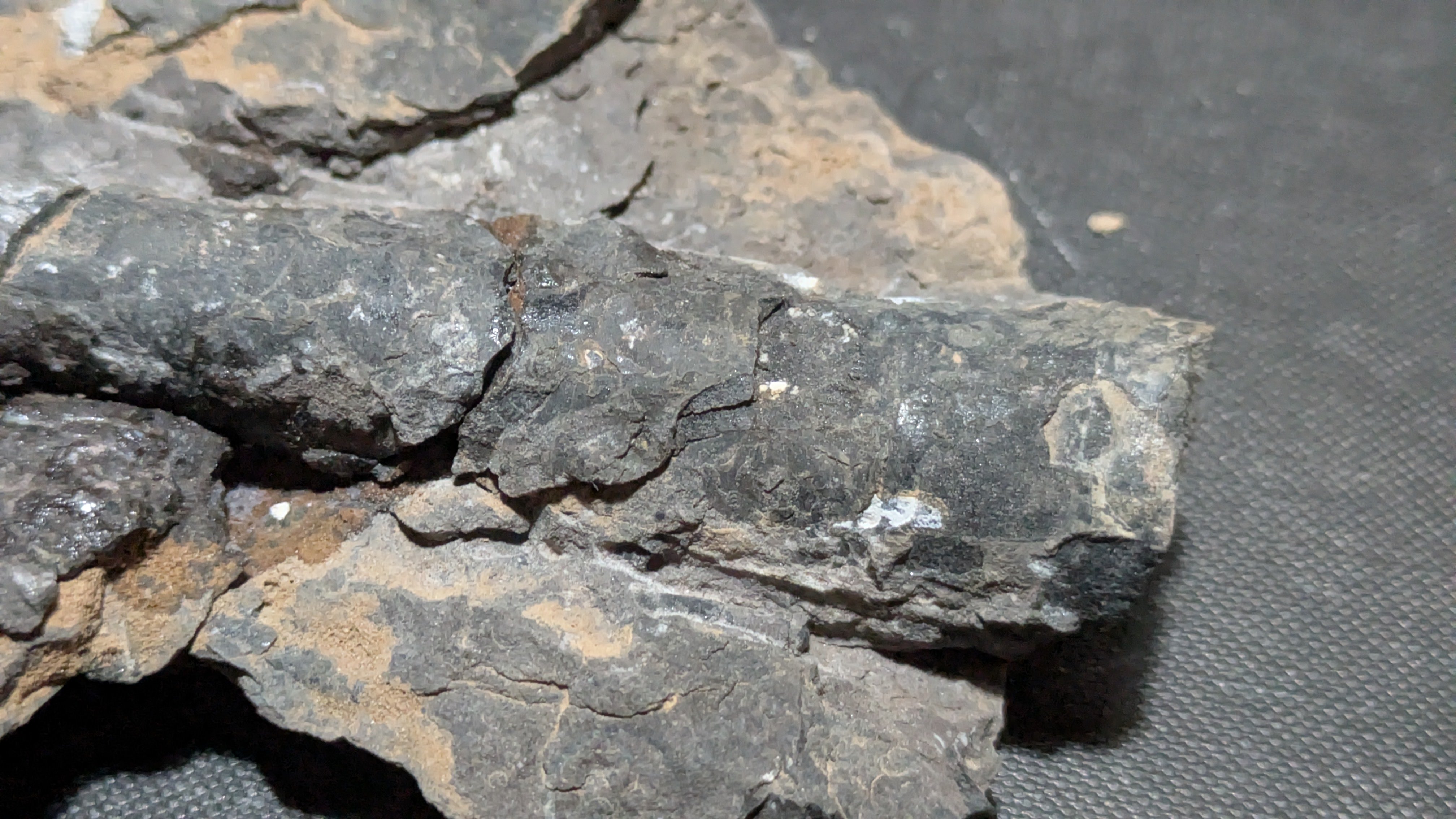 - : Calm offshore waters, fine sediment accumulation, floating crinoid colonies with gas-filled loboliths, episodic transport and burial, low-energy seafloor conditions
